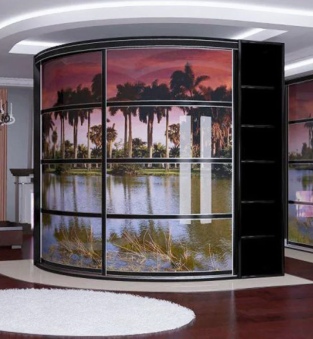 Хотите увеличить место для хранения вещей в шкафу - выбирайте вариант с выгнутыми дверями, в центральной части глубина составит 800 - 1500 мм.