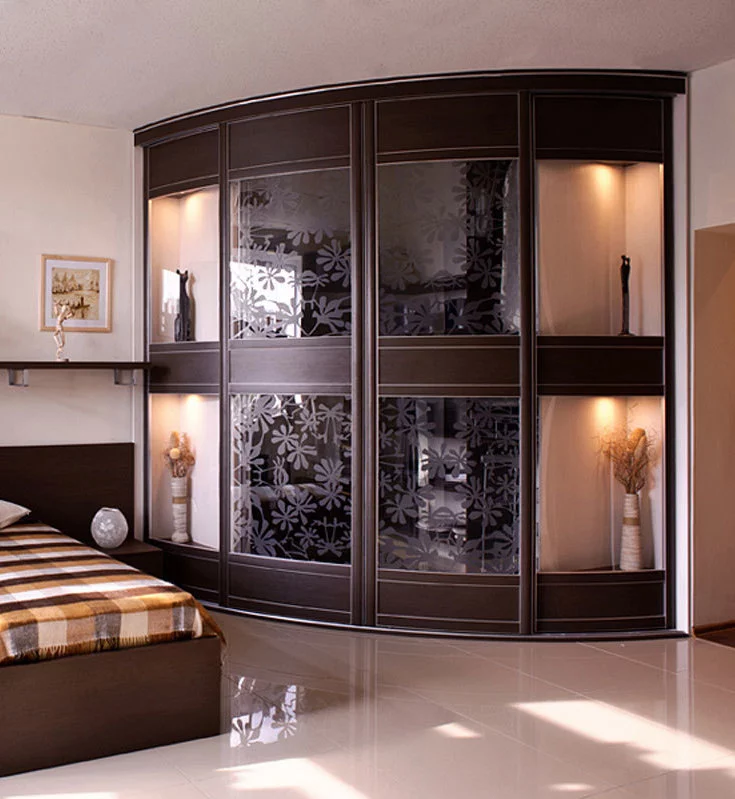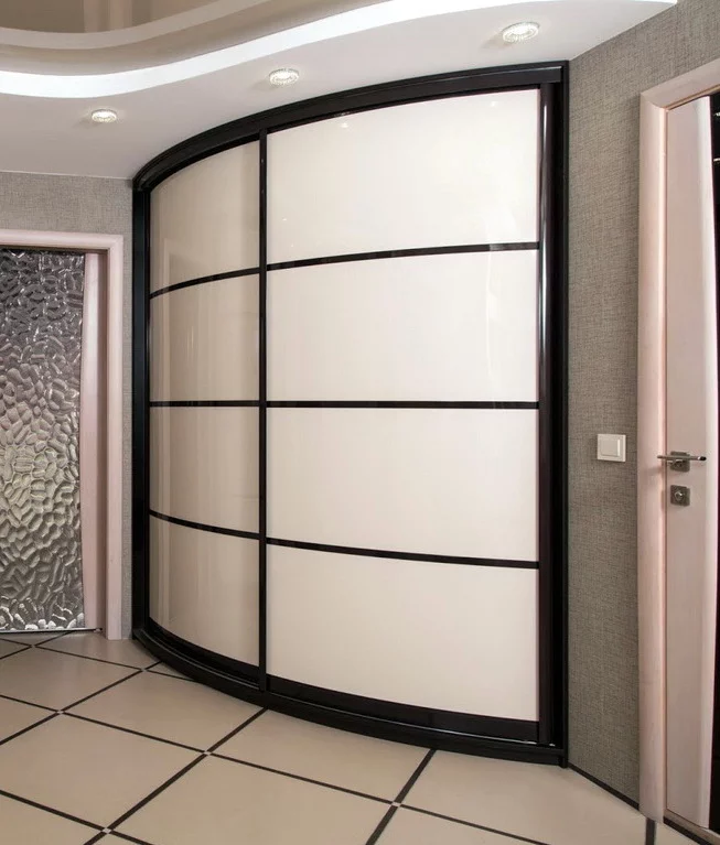 Хотите увеличить место для хранения вещей в шкафу - выбирайте вариант с выгнутыми дверями, в центральной части глубина составит 800 - 1500 мм.