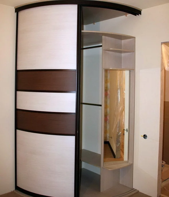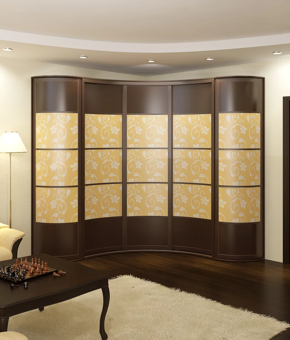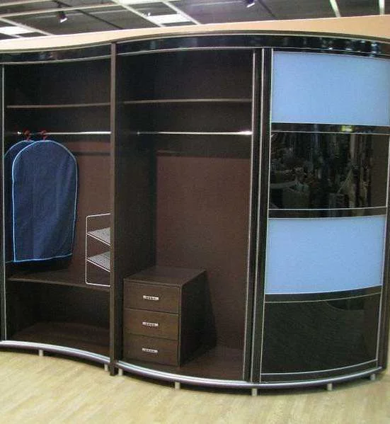 Хотите увеличить место для хранения вещей в шкафу - выбирайте вариант с выгнутыми дверями, в центральной части глубина составит 800 - 1500 мм.